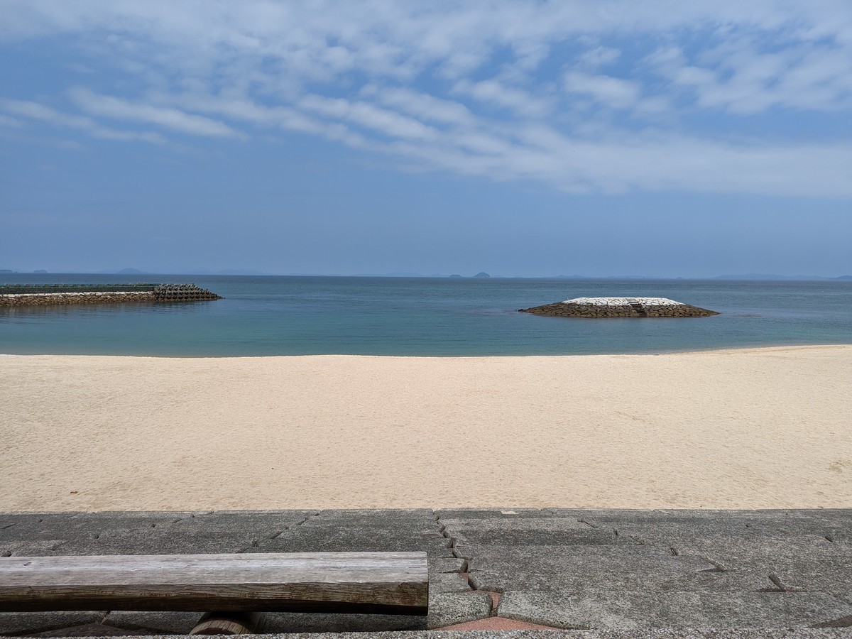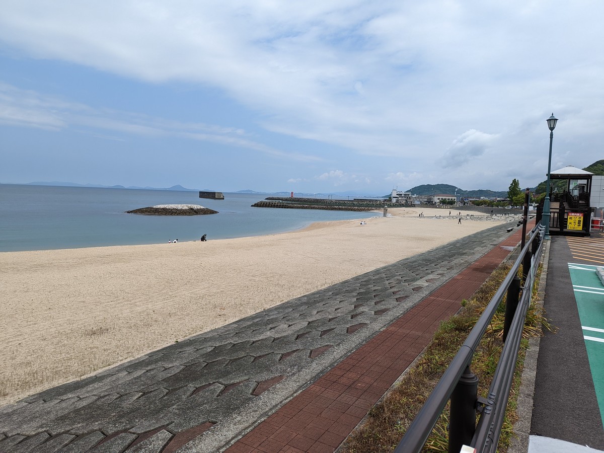 昨年リニューアルオープンしたばっかりの道の駅ふたみ。海水浴場がくっついています。