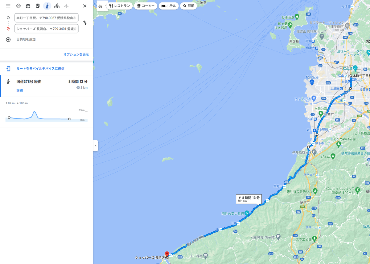 かかった時間は行きのショッパーズ長浜店までで写真撮影以外ノンストップ2h、エミフルMASAKIまで71km程度で休憩(折返し地点と帰りの道の駅)込み4h20m、全行程で4h50mでした。