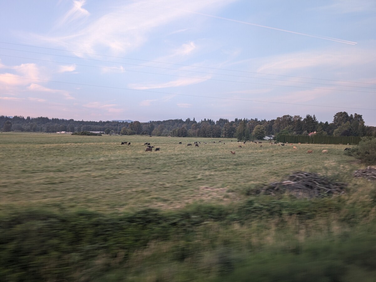アメリカ国境を越えてからの主要停車駅間は宗谷本線みたいな車窓だった。一方で海側はかなり海ギリギリを走る区間も多い。